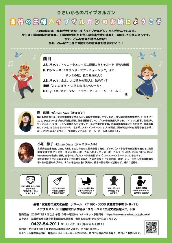 • 武蔵野市民文化会館で開催される「0歳からのパイプオルガン」公演のチラシを制作しました。