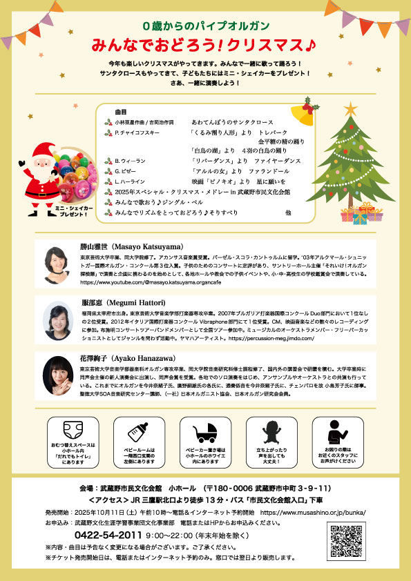 武蔵野市民文化会館で開催される「0さいからのパイプオルガンコンサート」の公演チラシ(表裏)を制作しました。